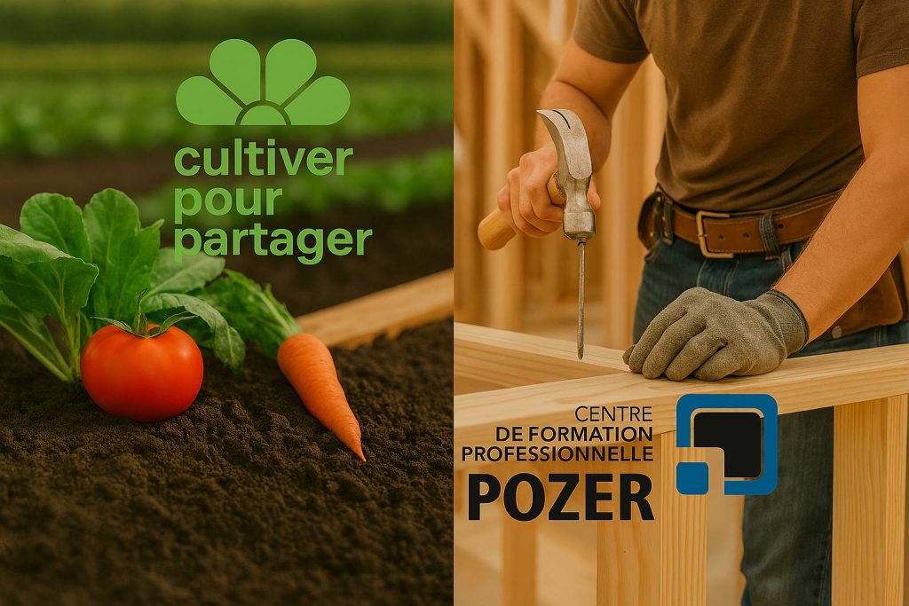 Les élèves du programme de charpenterie menuiserie du CFP Pozer mettent la main à la pâte — ou plutôt à la terre! — pour soutenir l’organisme Cultiver pour partager.